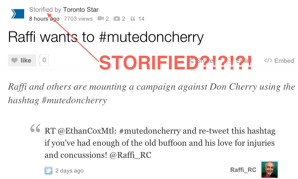 So, mea culpa, Toronto Star – this time. I guess you did legitimately Storify that… story.