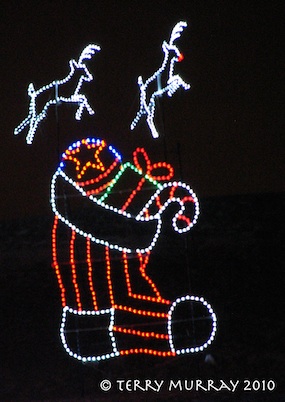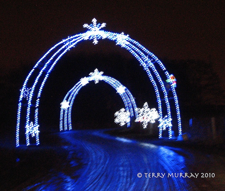 Alas… The Trail of Lights at Downsview Park is not happening this year, due to construction at the site. So here are some pictures shot from the car last year (when, as you can see, it had been a bit rainy).