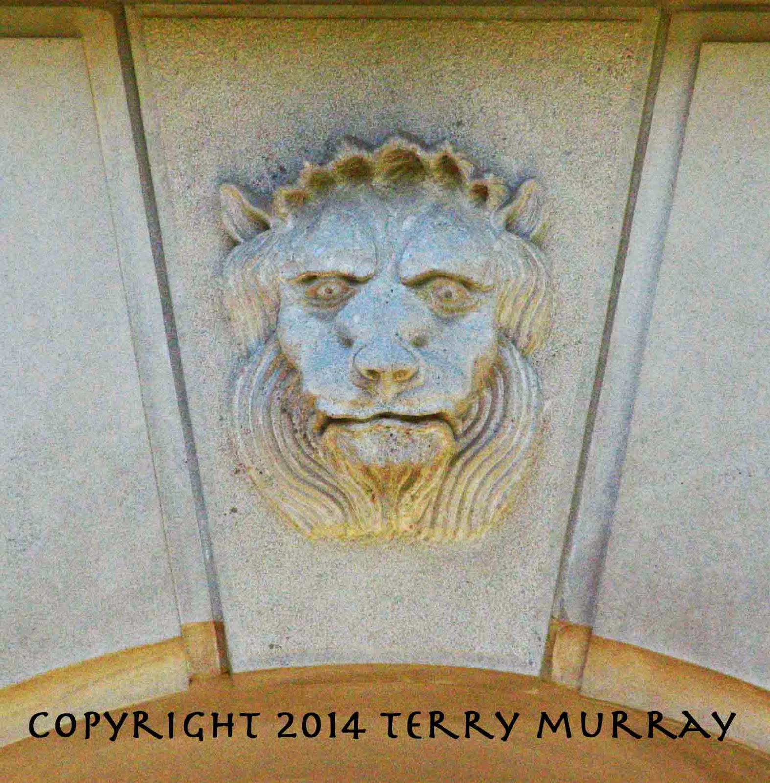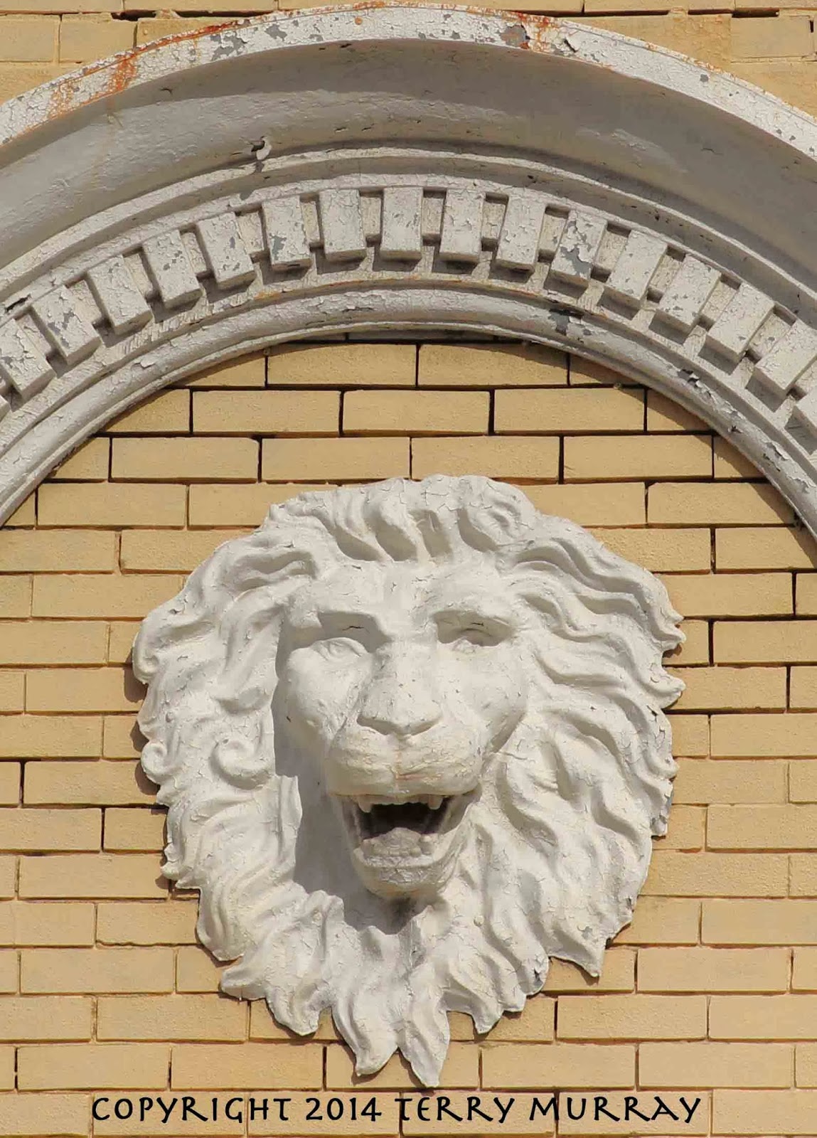 I talked to the then-owner of the house that sports these lions, but none of the very detailed information she gave me squared with anything I later looked up. So just enjoy these not-terribly ferocious-looking felines: